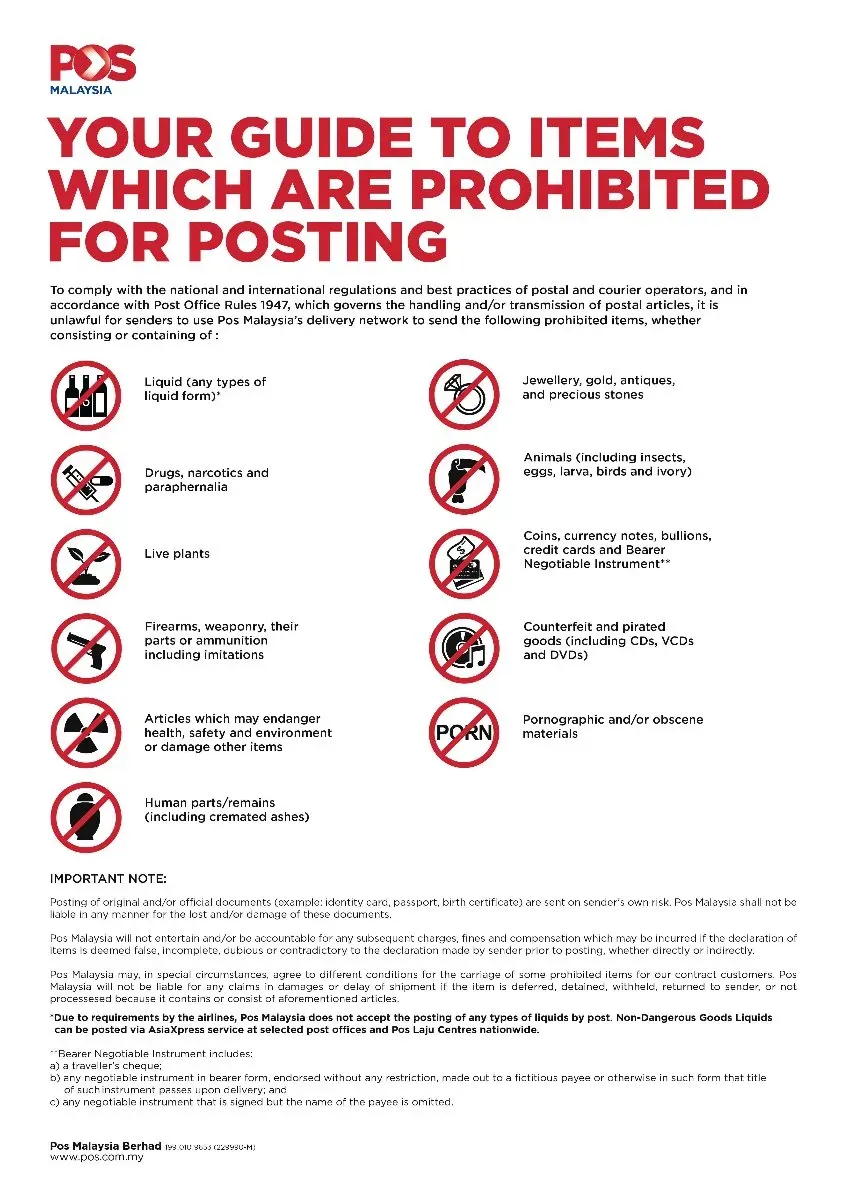 *International Small Packet published rate above is subject to 20% additional surcharge in Ringgit Malaysia (RM)
